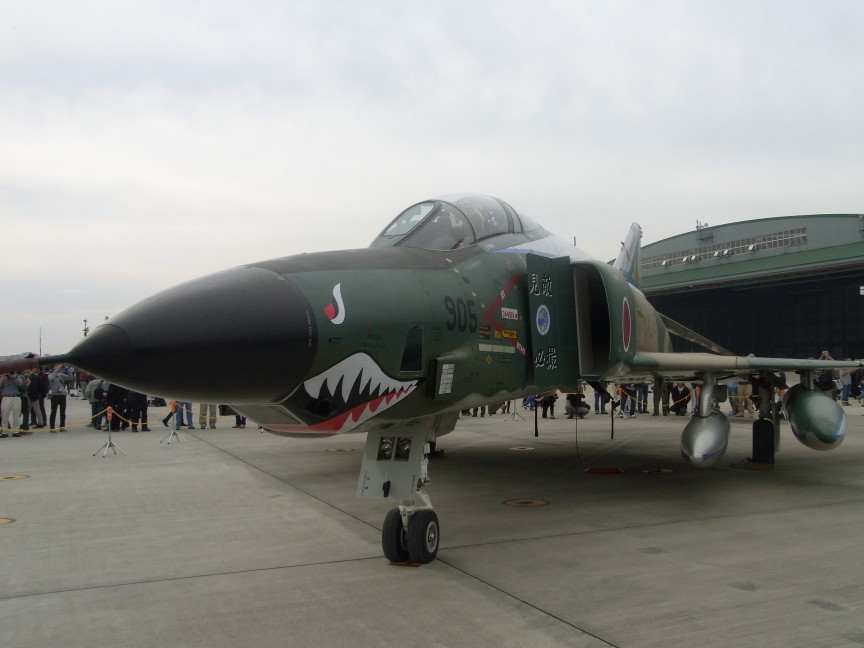 RF-4E。スプリッターベーン(エアインテイク前の板)に「見敵必撮」と書かれています。