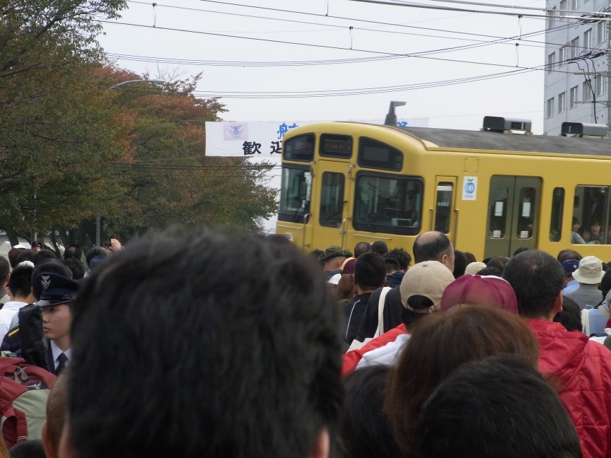 正面の踏み切りは西武池袋線。構内を普通の電車が貫いているという、世にも珍しい基地です。ここで電車の写真を撮る人もいます。私もチャレンジしてみました。