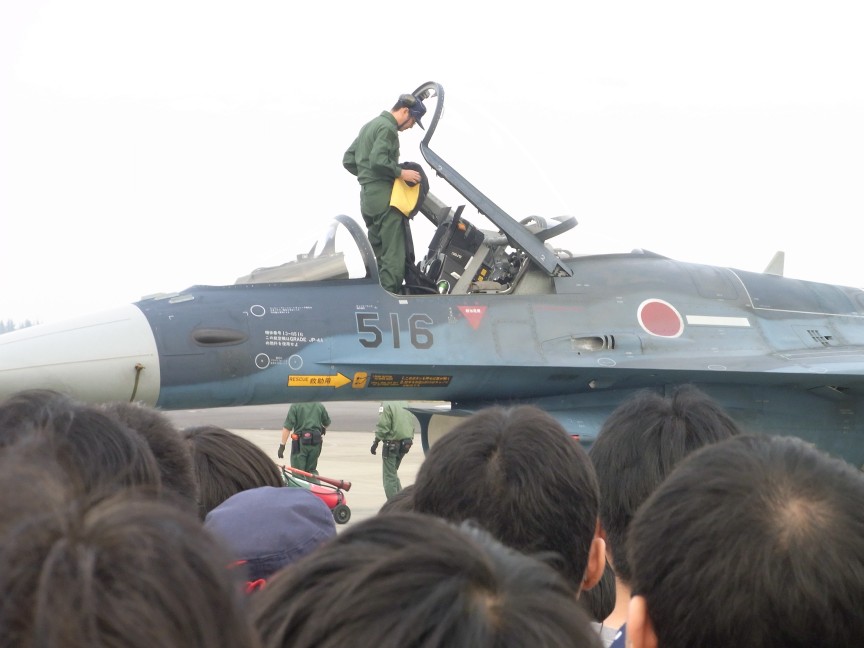 ちなみに、F-15Jは展示中止です。先日の燃料タンク落下事故の原因がはっきりしない以上、仕方がないでしょう。当初はコックピット内の展示が行われる予定でした。