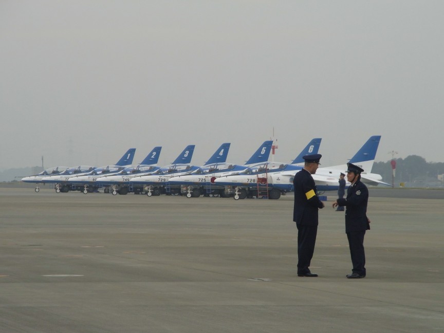 ご存知かとは思いますが、ブルーインパルスの本拠地である松島基地(宮城県)は、3月11日の大津波によって壊滅状態に陥りました。この時、ブルーインパルスはたまたま芦屋基地(福岡県)に展開しており、難を逃れたそうです。