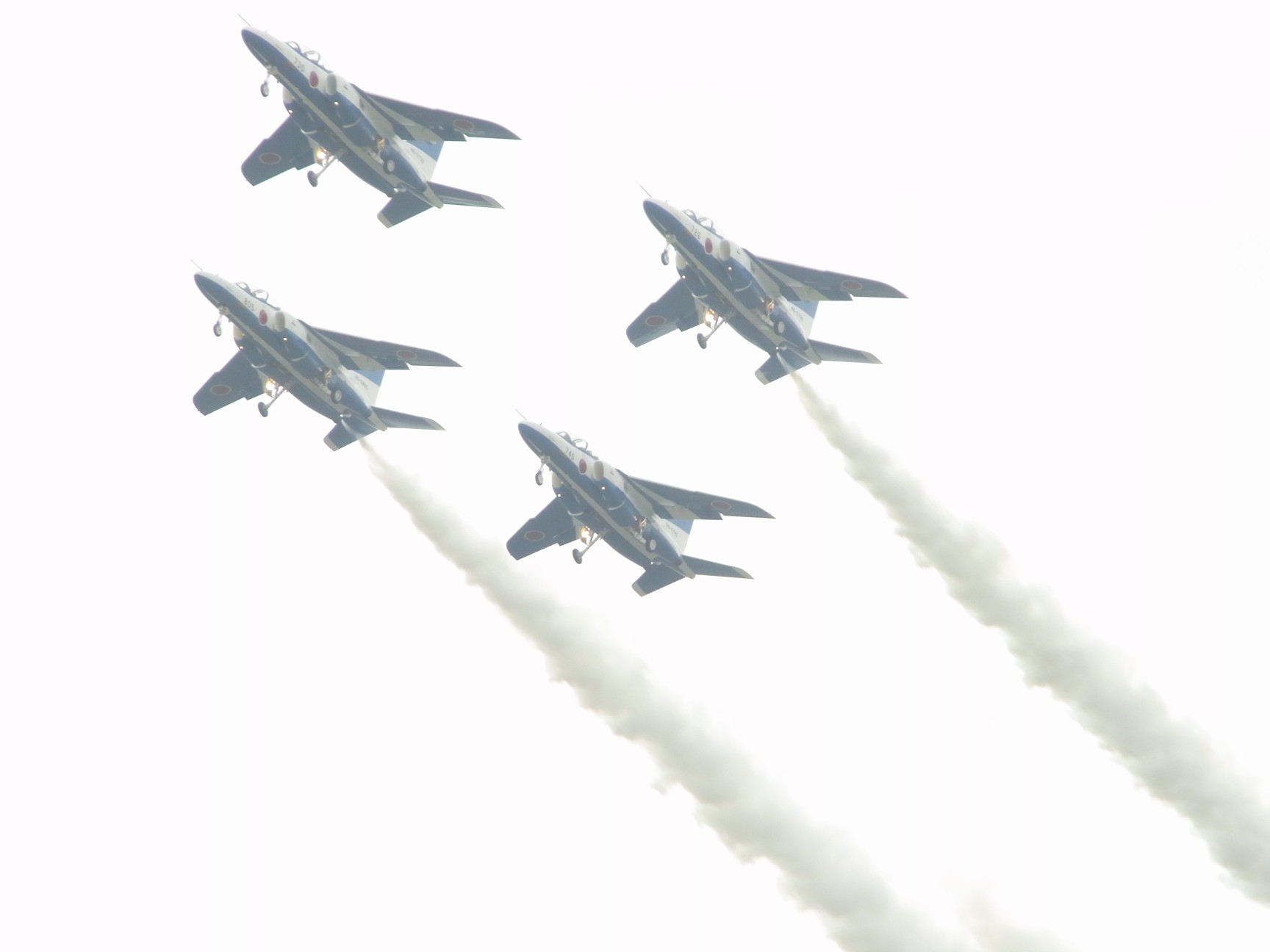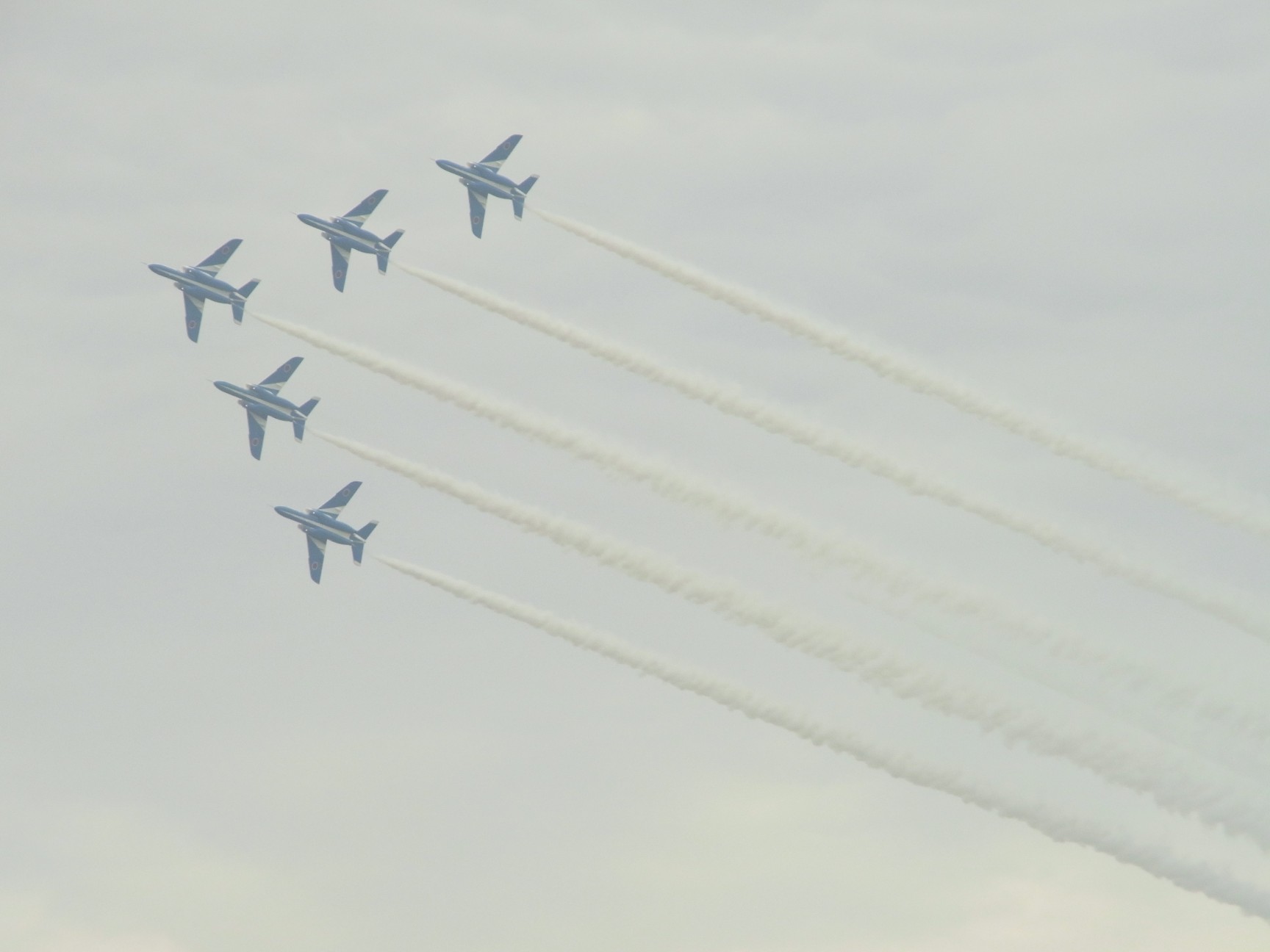 50代のパイロットが操縦しているとは思えない(失礼)、高度な編隊飛行を見せ付けてくれました。場内アナウンス曰く「自称、シルバー・インパルス」。ユルいアナウンスに会場内がドッと沸きました。