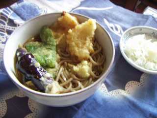 ツユは2、3日前に作って凍らせておいたものを解凍。麺は開封してから相当時間が経ったやつ。揚げたての天麩羅とおろし生姜を乗せてウマー。