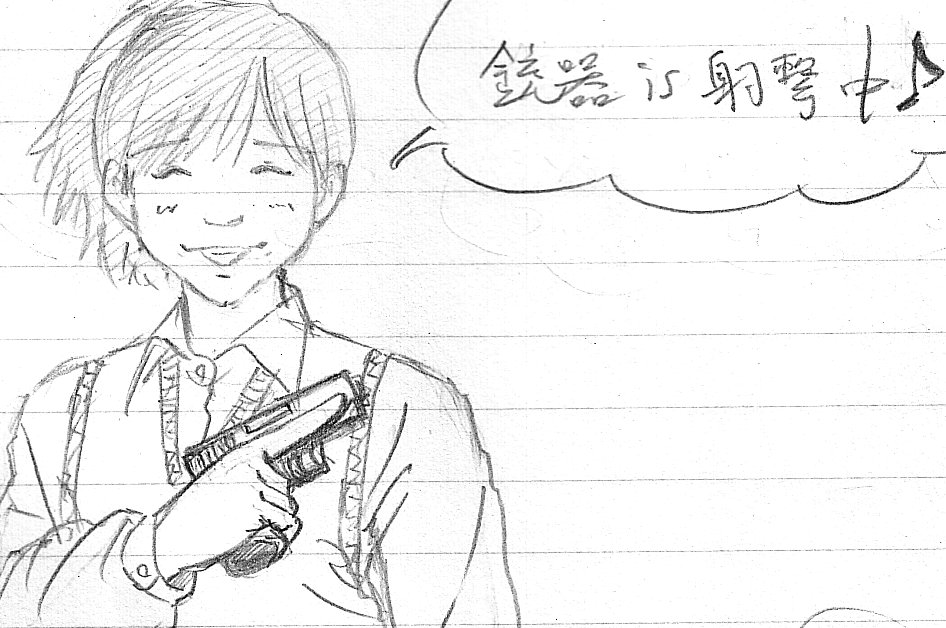 ええと、右手の拳銃は何かのネタにしようと思ったんだよな…。何だっけ…。