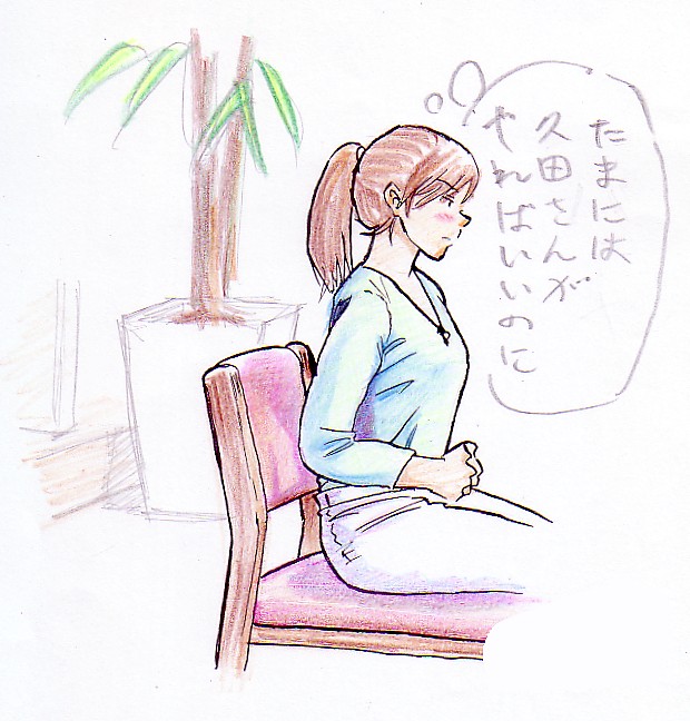 描線がガタガタなのは仕方がない。ペンなんて、前回の記事をうpした日に、それこそウン年ぶりに握ったんだもの。これからじっくりと時間をかけてペン入れの感覚を取り戻してゆく事になるだろう。ちなみに、丸ペンをメインとしたスタイルでのペン入れはやめ、サジペンに乗り換える事にした。丸ペンだとタッチが硬くなり易いし、今の私の視力では、ペンの先端を紙面の正確な位置に置くのは難しい。