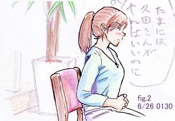 以前だったらこれだけ描くのに1時間はかかっただろう。当時は彩色の手段が水彩絵の具オンリーだったし、ペン入れを凄く丁寧にやっていたというのもあるが、それ以前に、下絵を描くのに凄く時間がかかった。全体の構造を決めてから細部の形状を描き込んでゆく、という基本的な作業手順を徹底していなかったため、デッサンの狂いが生じ易く、そのために下絵作業の能率が上がらなかったのだ。